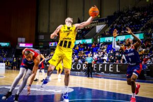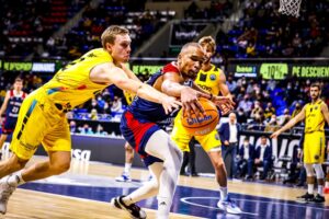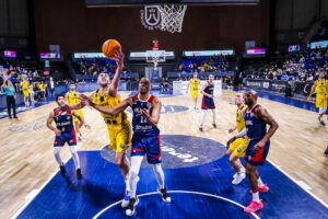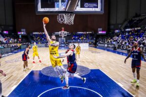 Con Howard en cancha, SIG Strasbourg tuvo un mayor acierto en ataque y sus acciones, principalmente desde más allá de la línea de tres puntos, llevó a su equipo a tomar una pequeña diferencia en el marcador (35-38). La reacción local no se hizo esperar. Parcial de 7-0 y descanso con un 42-38 que permitía a los aurinegros llegar a esta primera parte del choque con la tranquilidad de seguir dominando el encuentro.