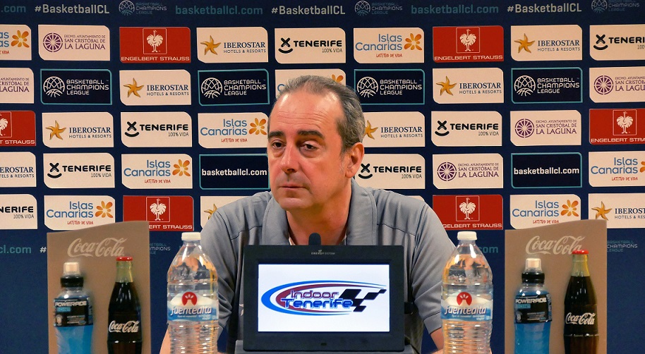 Txus Vidorreta, entrenador del Canarias, ha comparecido en la que, sin duda alguna, ha sido una de las ruedas de prensa más importantes de su carrera, dado el trascendental partido de vuelta de cuartos de final de la Champions Basketball League ante el Asvel, campeón francés, que disputará su equipo mañana.